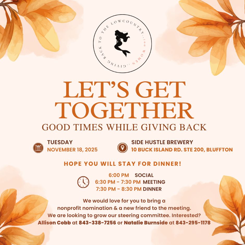 Follow us on Facebook @100WomenGivingBacktotheLowcountry