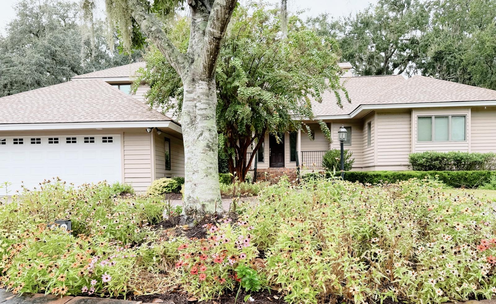 Tucked away at the end of a quiet cul-de-sac on Spartina Point Drive, this Moss Creek home captures one of the prettiest vistas in the entire community. We know it’s hard to choose—Moss Creek is filled with incredible views—but here, the flowers, butterflies, and thoughtful plantings add a layer of beauty that makes the setting truly unforgettable. Towering live oaks and southern magnolias frame the property, while the marsh stretches out toward rolling golf course greens. It’s a home that feels at once private, picturesque, and perfectly Lowcountry.