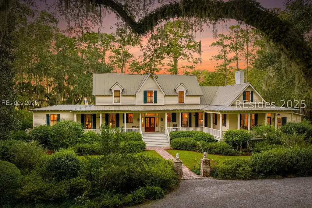 Designed by Historical Concepts and masterfully built in 2005, this custom 3-bedroom, 4-bath home offers 4,231 sq ft of timeless craftsmanship and understated Southern charm. Set at the end of a lane on 6.44 picturesque acres, the property welcomes you with a stunning drive framed by stately live oaks, leading to a retreat perfectly positioned along the marsh and a freshwater pond. Inside, hand selected 1770-1790's reclaimed antique wood graces the floors, walls, and beams, infusing the home with character and warmth. The thoughtfully designed floor plan offers inviting living spaces including, a large living room and dining room both overlooking the pond and marsh. A beautiful den ideal for quiet work or reading and a dream kitchen that accommodates more than one cook. The first floor primary bedroom and bath occupy one end of the home with private access to a screen porch with those same beautiful views of the pond and marsh. The second floor has two large bedrooms and baths and a perfect nook with bunkbeds for the little ones in your life. Each room showcases exceptional attention to detail, seamlessly blending classic Lowcountry style with modern comfort. Expansive porches wrap around the home, providing the perfect setting for outdoor living and entertaining, while a spacious screened porch invites you to relax and take in breathtaking views of the marsh and surrounding waterways. Large windows throughout capture the surrounding natural beauty, creating a seamless connection between indoors and out. This property is more than a home-it's a sanctuary where craftsmanship, nature, and Southern heritage come together in perfect harmony.